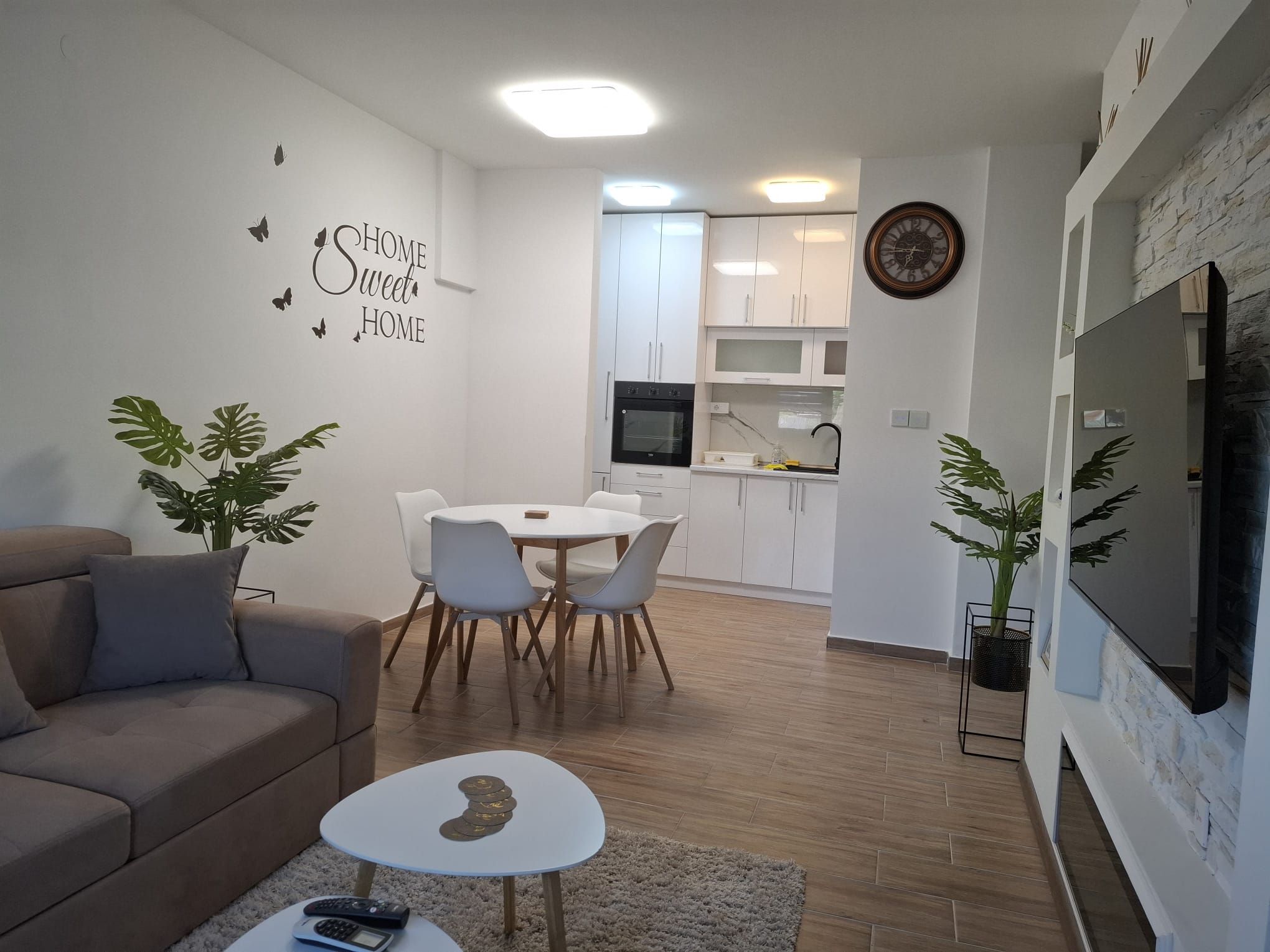 Spavaća soba sa bračnim krevetom (160×200) i dnevni boravak sa rasklopivim trosedom čine ga pogodnim i za parove i za porodice.